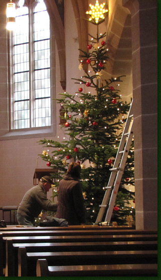 ... den Weihnachtsbaum in der Kirche aufstellen und schmücken.