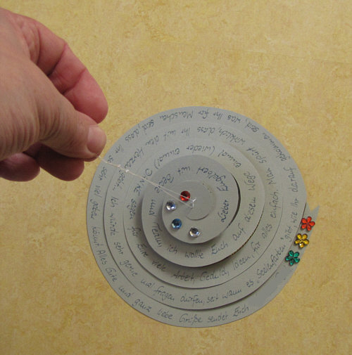 Aus einer runden Karte, die man im Kreis drehen muss,