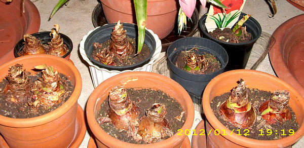Wir sehen noch winterschlafende Amaryllis, zwischen einem und vier Jahre