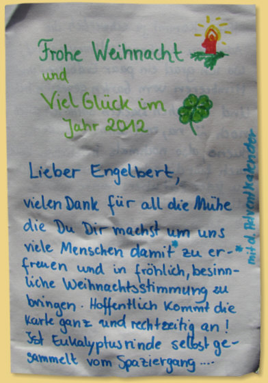 Und dann die Karte ... mit der Eukalyptusrinde: