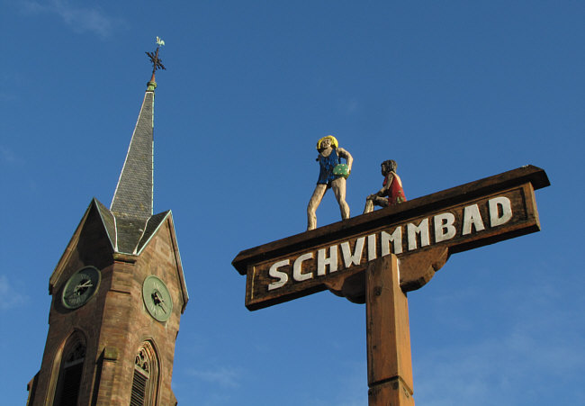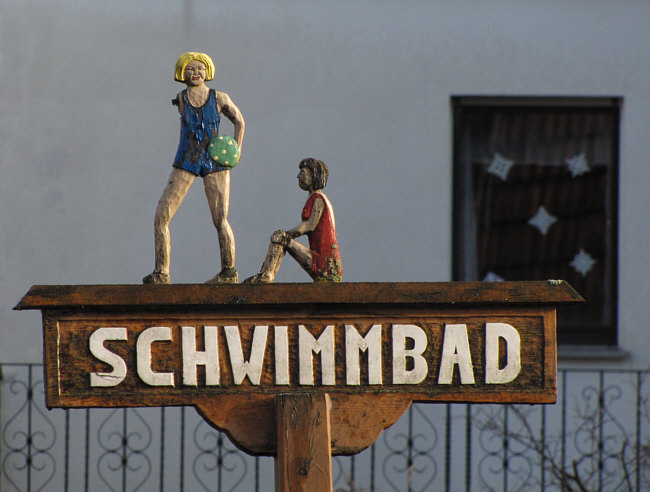 Das erste, was mir ins Auge fiel, war das Schwimmbadschild ... hey,