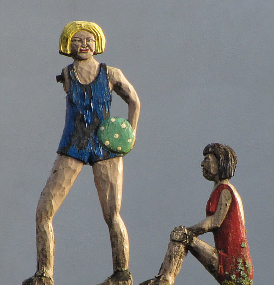Schilder aus Holz ... mit Figuren oben drauf ... wo findet man sowas