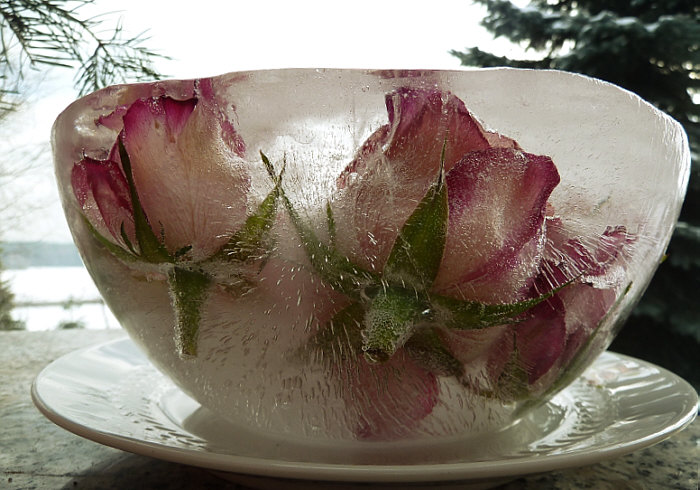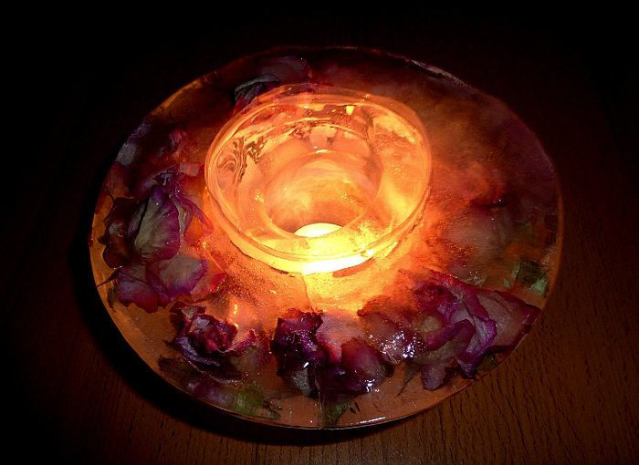 und man stellt (am besten bei Frost) dieses Eislicht vor die Haustüre.