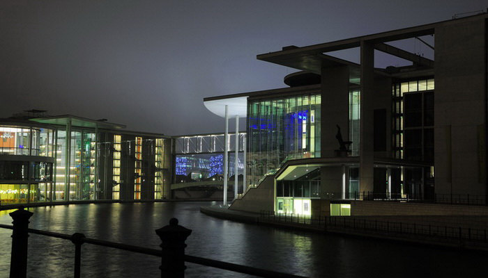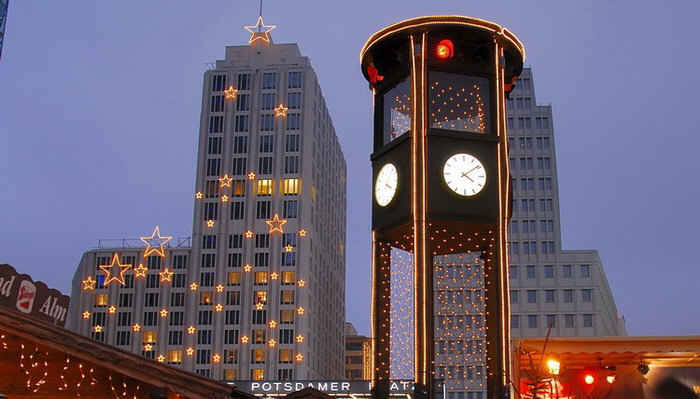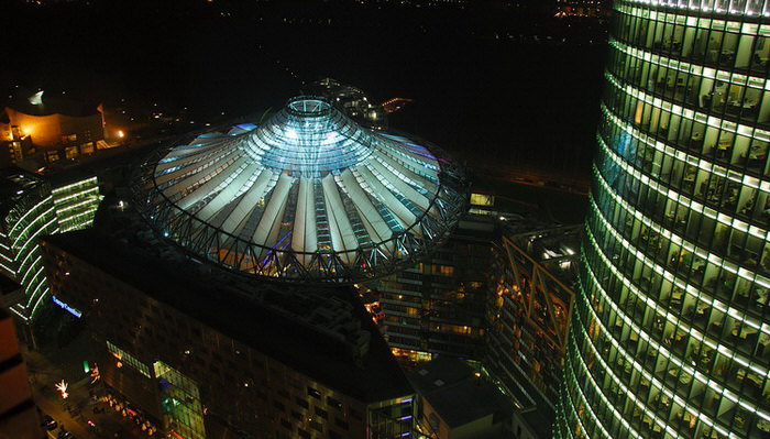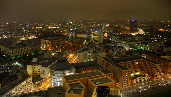 Blick über das nächtliche Berlin vom Hochhaus am Potsdamer Platz