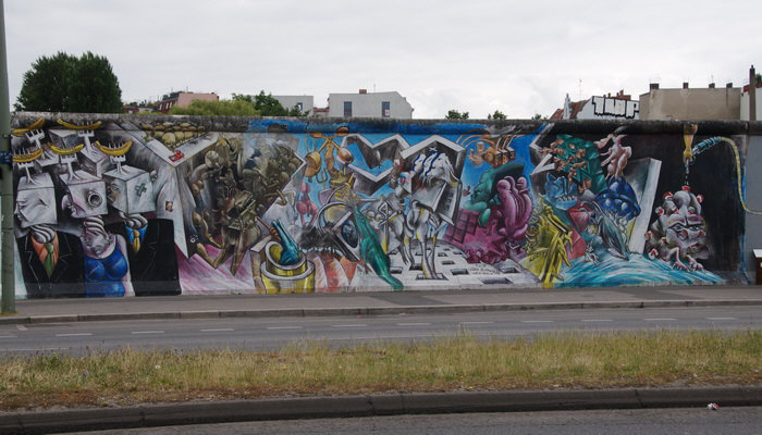 übriggebliebenen Mauer an dem sich Künstler mit ihren Werken verewigen