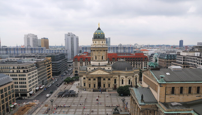 der Gendarmenmarkt mit Blick zum Deutschen Dom, fotografiert von
