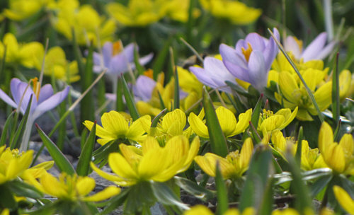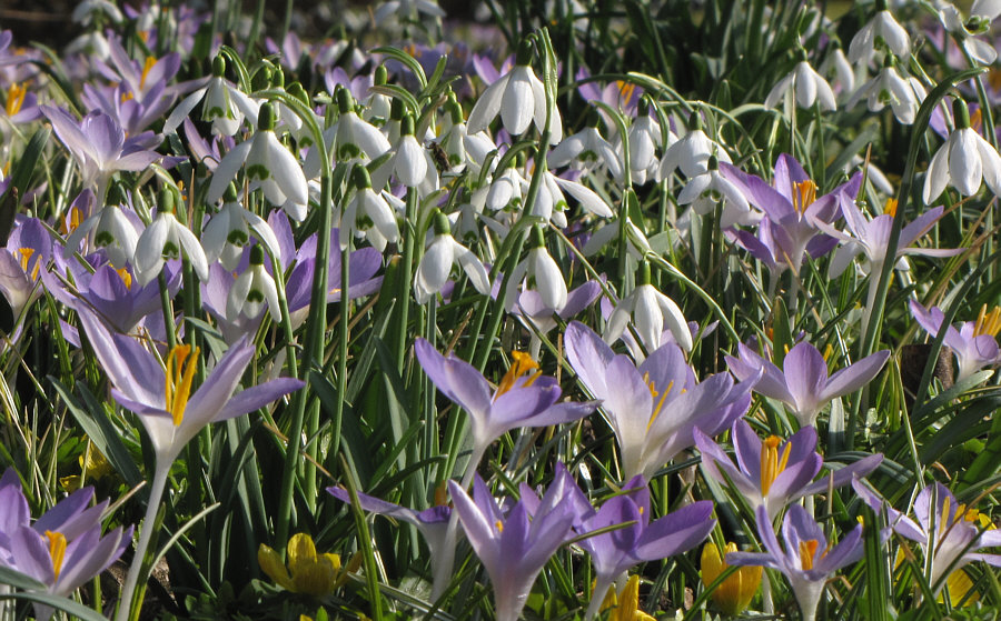 ... aber sie vertragen sich auch mit Schneeglöckchen sehr gut: