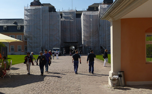 Da stört etwas die Mauer da hinten und außerdem sitzen die Menschen auf