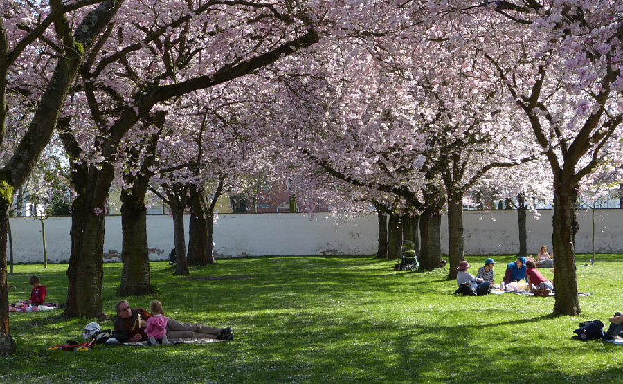 Dieser schönen Zierkirschenalle gehört zum Schwetzinger Schloß ...