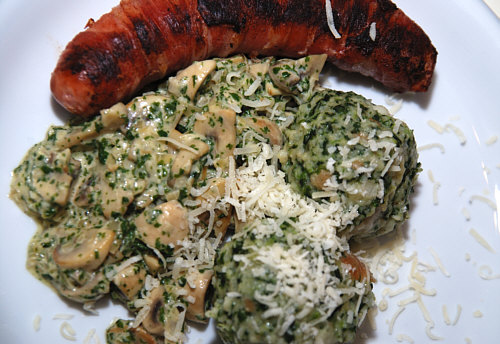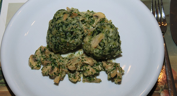 Denn das sind doch nur Spinatknödel mit Pilzen ... da ist doch gar kein