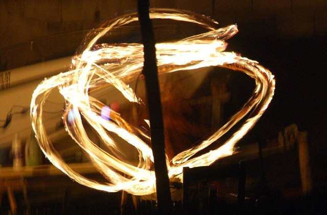 und für ihre Straßenaufführung das Schleudern von Licht übt.