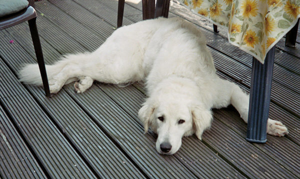 Ronja ist riesig (Schulterhöhe 70 cm) und schneeweiß und sieht auch wie