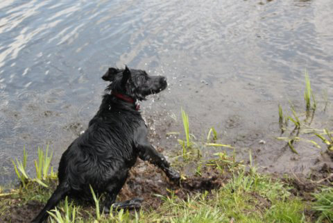 Die Tropfen fliegen - Hund und Menschen haben Spaß!"