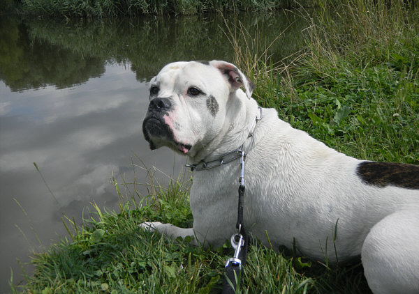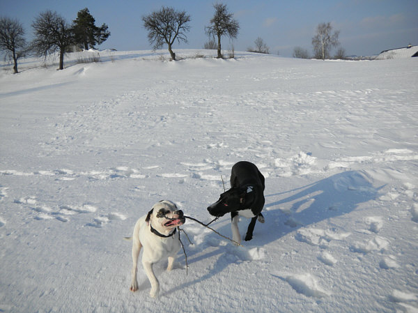 (auf dem Bild im Spiel mit Akira, einer deutschen Doggendame)