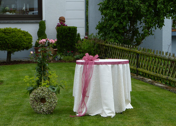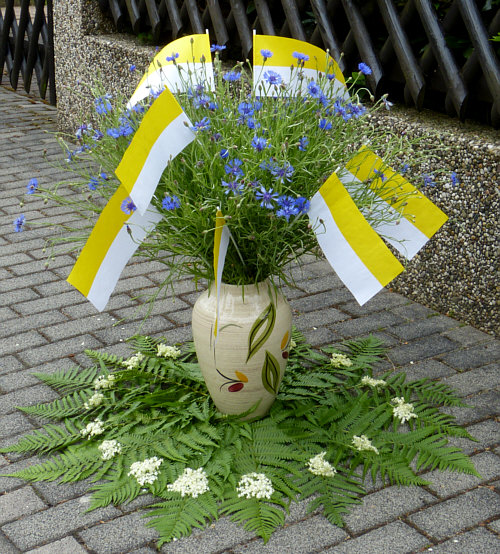 Und auch hier immer wieder Blumenvasen mit Fähnchen ...