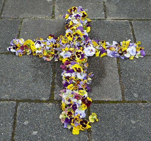 Unterm Kreuz ist Sand und vor dem Kreuz wurde Erde aufgeschichtet und