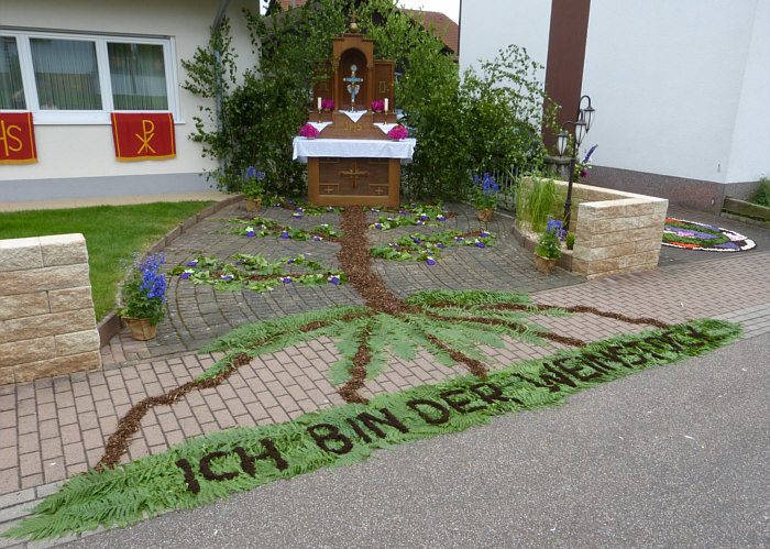 Doch dieser Altar mit sehr schöner Dekoration ("ich bin der Weinstock")