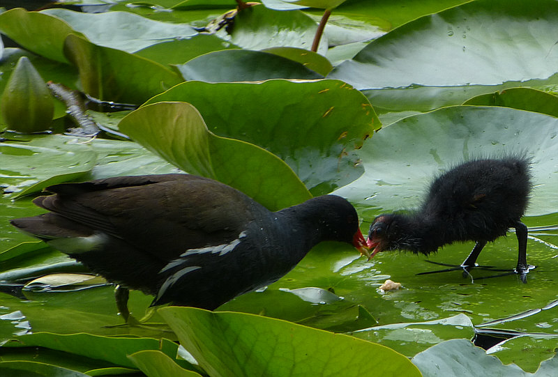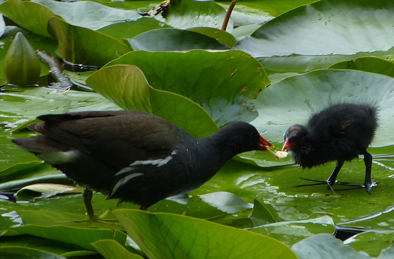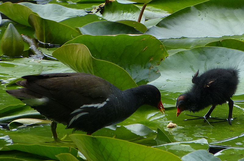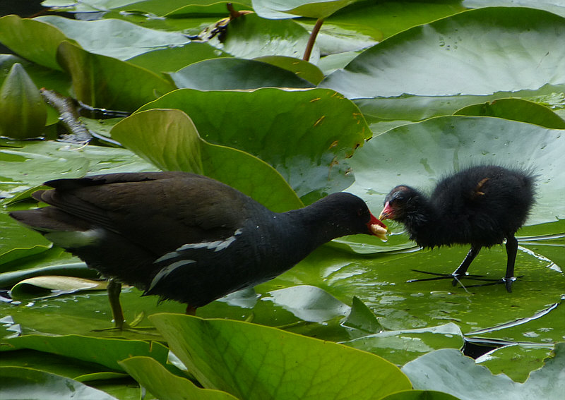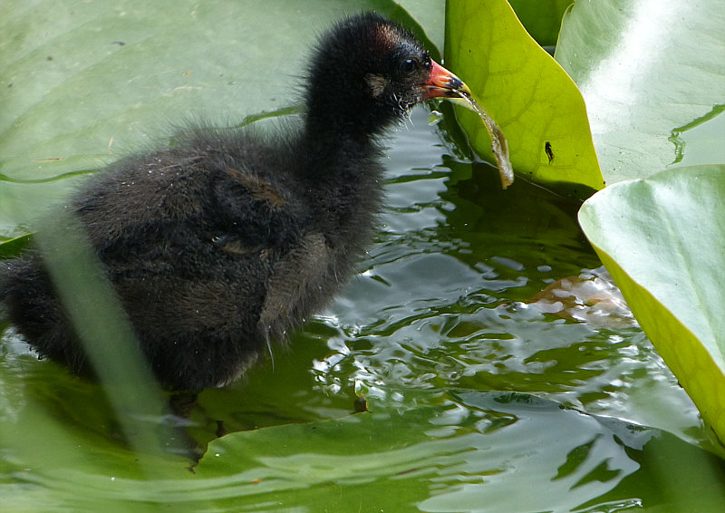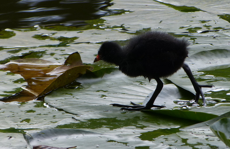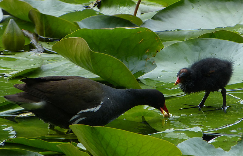 Die stiefelt dann auch über die Seerosenblätter ... bis zum Rallenkind: