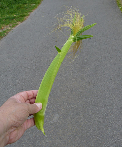 ... halte ich den Maiskolben mit Bart selbst in der Hand.