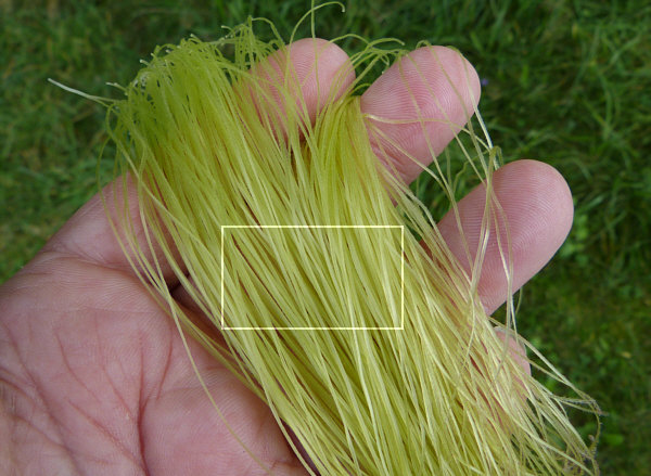 Und dort sind viele Haare oder Fäden oder der Bart dran.