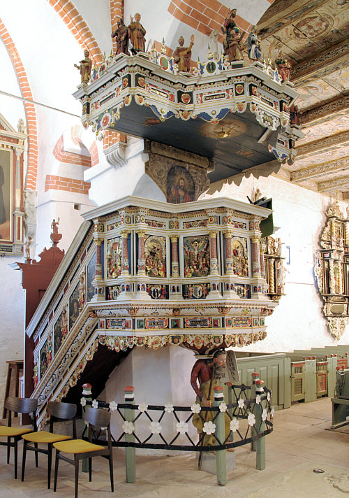 Weiter vorne ist die Kanzel zu finden: