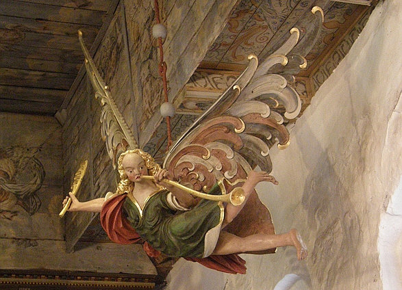 Rechts oben fliegt ein Engel: