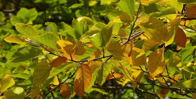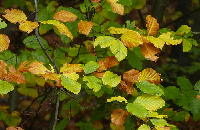 Während die Blätter alle Farben von grün über gelb zu braun haben,