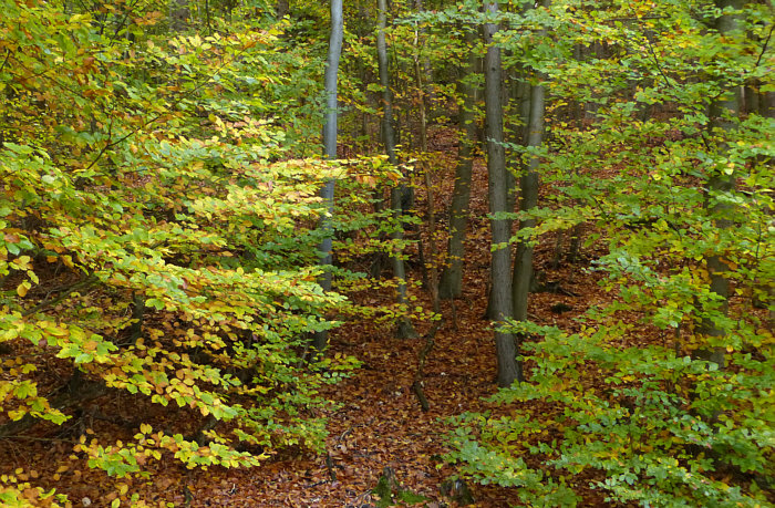 Vor uns leuchtet der Herbstwald in all seiner Pracht ...