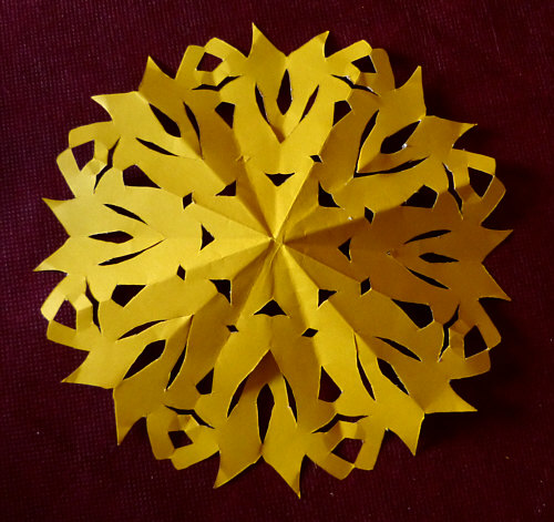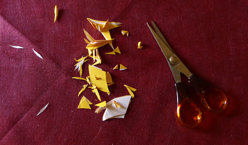 dieses faltete und dann versuchte, mit der Schere so zu schneiden,