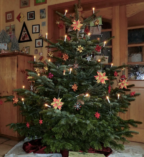 einen der (selbsgebastelten) Bascettasterne auf der Spitze. Da wir in