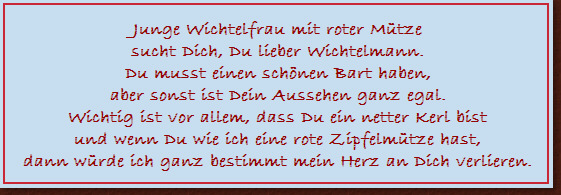 um eine schöne Überleitung zu den Wichtelmännern zu finden.