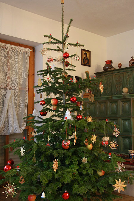 Der Baum wird am 23.12 abends aufgestellt und kommt nach Dreikönig weg. Meist ist er dann so trocken (wir haben Fußbodenheizung), dass er sehr unansehnlich geworden ist. So auch dieses Jahr, da ist er nicht mehr ordentlich mit gutem Gewissen fotografierbar ... :-( |
