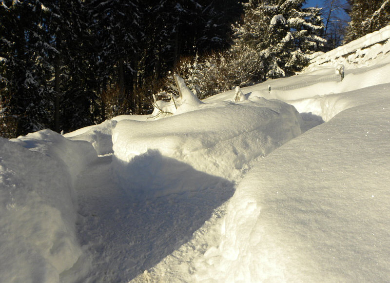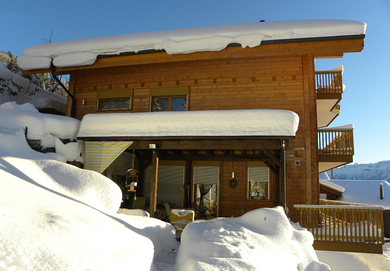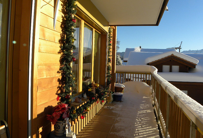 dieses Pulverschneeleuchten vor sonnenbeschienenen Balkons.