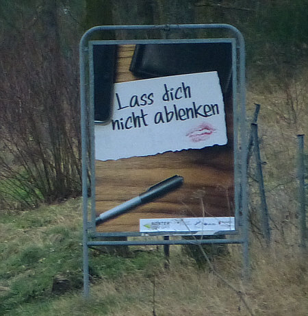 Er sieht da vorne ein Schild am Straßenrand ...