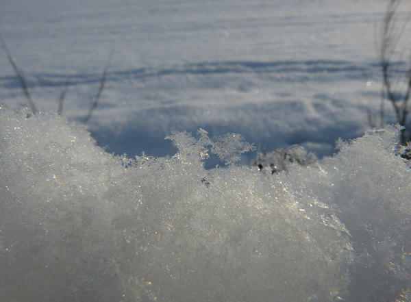 lose Schneekristalle über den anderen Schnee hinaus ... und dann kann