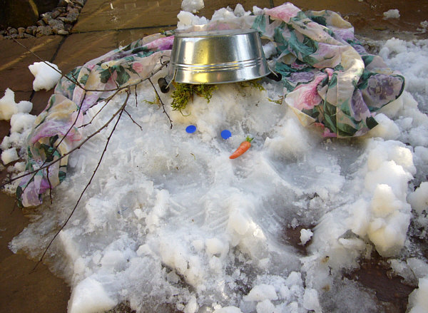Vorne rechts das Werkzeug ... ja, Schneemannbauen ist ein Handwerk, im