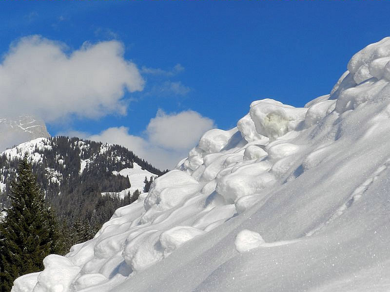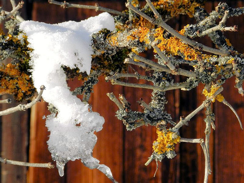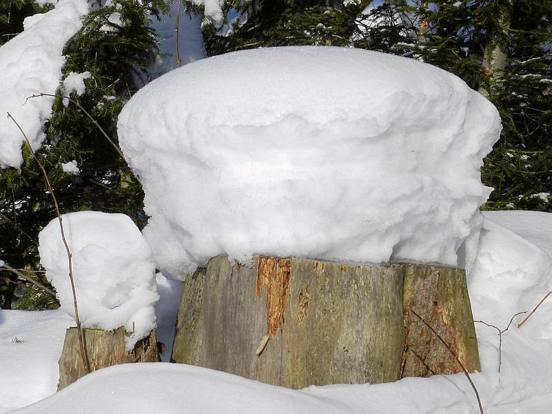 Nein, es ist Schnee ... der auf Baumstämme ...
