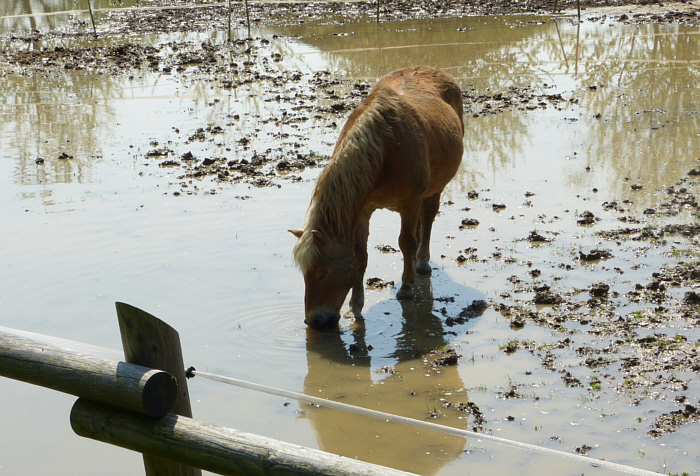 ... gibt es Pferde, die hätten gerne weniger Wasser um sich herum: