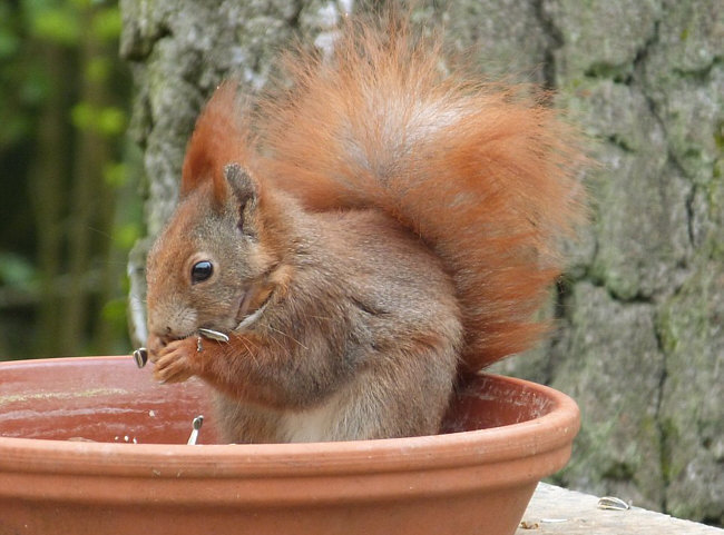 ... schaute dieses Hörnchen zuerst, ob noch was da ist ... und dann ...