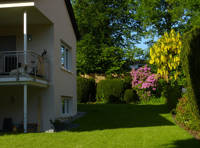 Fällt Dir bei diesem Bild etwas auf ? Nöö ... Ja, der Goldregen ... Ja, der Rhododendron ... Ja, der schöne grüne Rasen mit Schatten und Licht ... Ja, etwas anderes ...