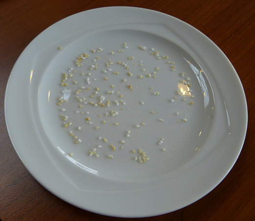 Die braunen Krümel, da ist noch büschen Brezel dran.