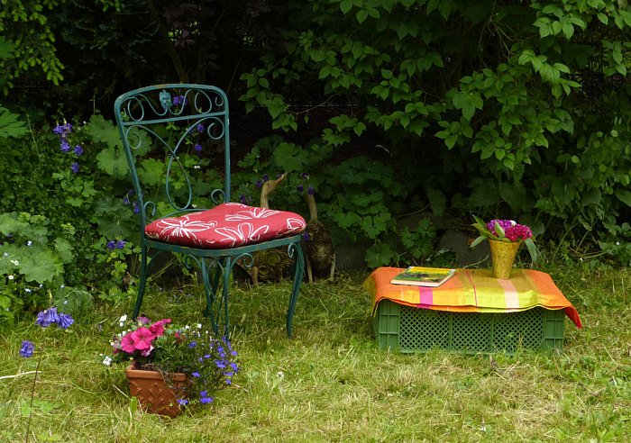 Direkt daneben mit Blick auf die Wiese könnten wir uns hinsetzen ...