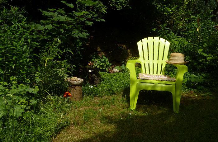Der nächste Sitzplatz ist grün und mit Hut: