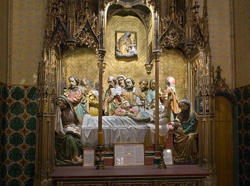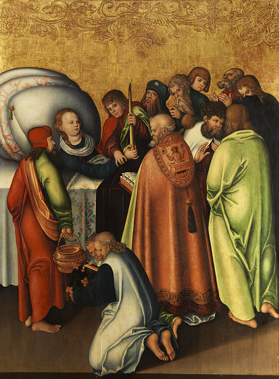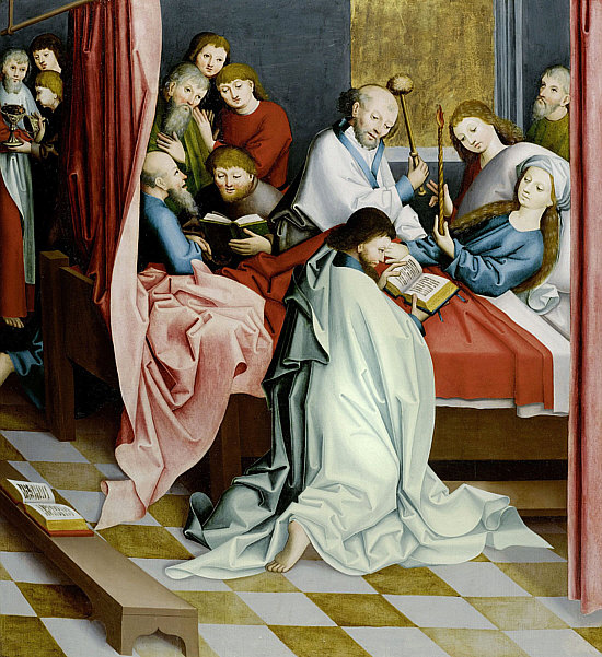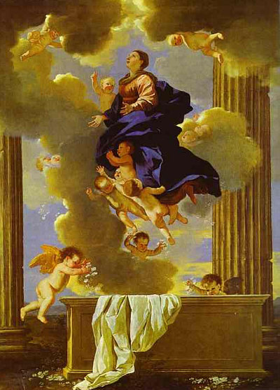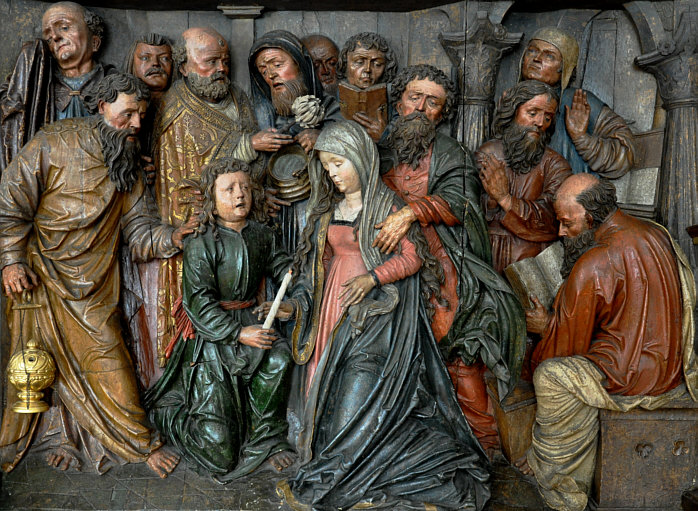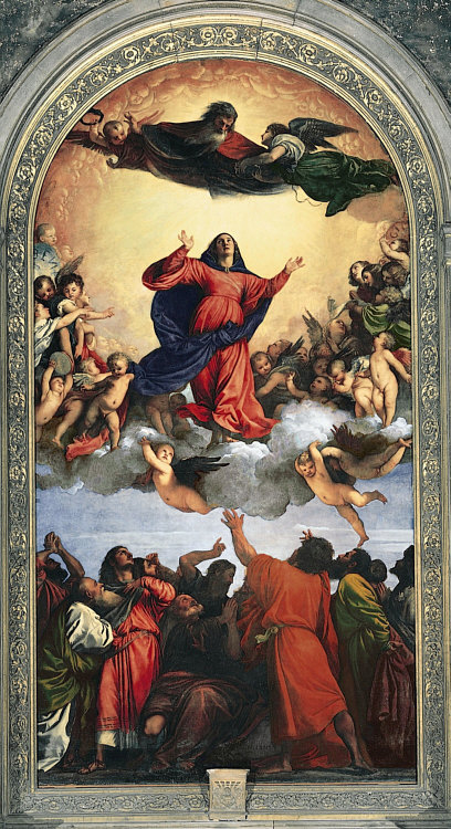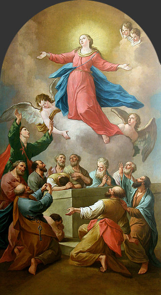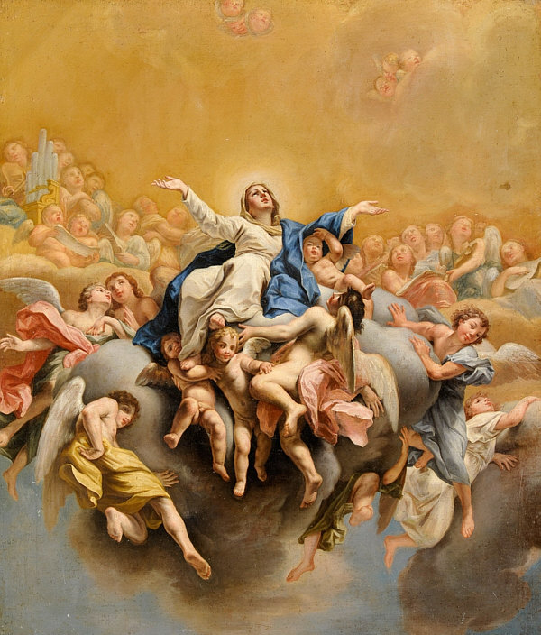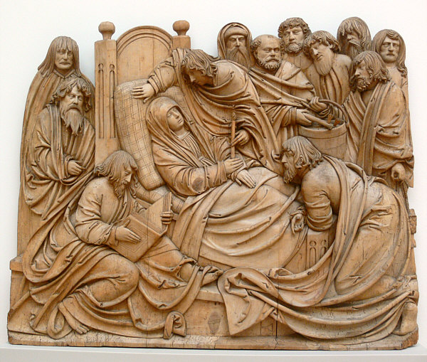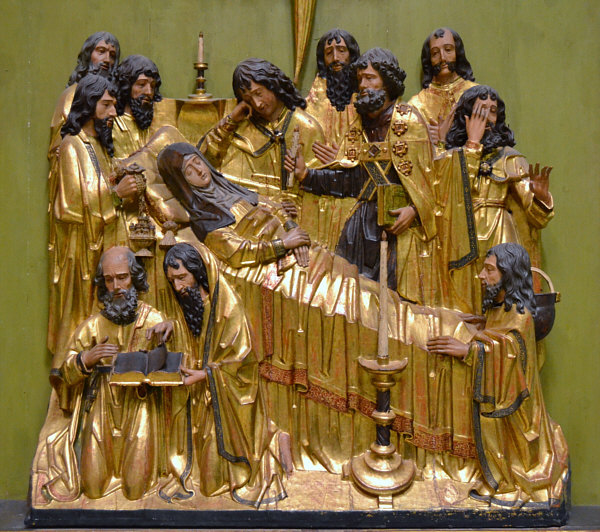 Rotes Kleid Blauer Umhang Lange Haare Engel an ihrer Seite So wird sie oft dargestellt: ![]() (Guido Reni, 1580) Von Engeln getragen ... leicht leidender Blick. Oder in Ergebung auf das, was kommt ... der Himmel. Heute ist das Fest dieser Dame ... die Maria heißt und die Mama von Jesus ist. Was auffällt, sind die drei Engelköpfe unter ihr. Ist immer sehr gewöhnungsbedürftig, wenn etwas nur aus einem Kopf besteht. Oder besser aus einem Kopf mit Flügeln. Auch hier sind nur Engelköpfe zu sehen ... bzw. die Engel haben Wolkenkörper. ![]() (Leopold Layer, 19. Jh.) Hier sieht man aber auch Menschen ... und das passt, denn es wird darüber berichtet, dass die Apostel am Sterbebett waren und Maria nach deren Tod bestattet und das Grab mit einem weißen Stein verschlossen hatten ... aber sofort sei dann Christus mit den Engeln erschienen, der Stein wurde weggewälzt und Christus hat seine Mutter herausgerufen. Hier ... ![]() (Tizian, 1517) ... sieht man den Jesus sehr gut. Ein opulentes Bild ... das alles zu malen ... Chapeau. Jemand, der sich mit Kunst und/oder Geschichte gut auskennt, könnte sicher eine interessante Bildbeschreibung machen und uns auch einiges Details erklären. Ich kann nur, was ich sehe und empfinde, hier niederschreiben. Ich schaue einfach die Bilder an und schreibe meinen persönlichen Eindruck ins Kalenderblatt. Wer etwas besser weiß, der möge das bitte Kund tun. Dieses Bild ist übrigens in einer Kirche zu finden ... ![]() Foto: Schlaier - Lizenz: CC by-sa 3.0 ... und zwar in der Kirche "Santa Maria Gloriosa dei Frari" in Venedig, auch Frarikirche genannt. Das Bild wurde speziell für diese Kirche gemalt und 1518 am Hochaltar aufgestellt. Ein sehr großes Bild ... 6,68 x 3,44 Meter, gemalt in Öl auf Holz. In dieser Kirche ist auch das Grabmal Tizians zu finden. In Frankfurt am Main steht die Maria als Skulptur ... in der Marienkapelle des Kaiserdoms St. Bartholomäus: ![]() ![]() Foto: Magadan - Lizenz: CC by-sa 3.0 Vergleichen wir doch mal dieses Kunstwerk mit einer anderen Skulptur: ![]() Foto: Andreas Praefcke Es fällt auf, dass wir trotz aller Unterschiede verschiedene Menschen wiedererkennen. Der Mann in der Bildmitte oder der Mann rechts mit der Schrift. Oder der Mann mit dem "Helm" und der mit der "Kapuze". Kenner solcher Bilder können ganz bestimmt sagen, wer wer ist ... wenn ja, dann gerne, denn ich möchte jetzt nicht so ins Detail gehen. Dieses Werk ist übrigens in der Pfarrkirche St. Magnus in Bad Schussenried zu finden. Auch als Holzskulptur gibts die Todesszene Marias: ![]() Foto: Andreas Praefcke Und, ganz anderes Material und doch gleiche Szene: ![]() Foto: Joanbanjo - Lizenz: CC by-sa 3.0 Es ist durchaus faszinierend, wie unterschiedlich eine Szene dargestellt werden kann und wie bei allen Unterschieden stets klar ist, dass das das gleiche Geschehen ist. Es geht aber auch ganz anders vom Bildaufbau her: ![]() (Francesco Botticini, 15. Jh.) Oder so: ![]() (Lorenzo Lotto, 1506) Es gibt auch Bilder, die lassen das Geschehen auf der Erde ganz weg: ![]() (Nicolas Poussin, 1626) Hier sind nur Engel und die Maria zu sehen. Oder der Maler zeigt uns nur den Himmel: ![]() (Mariano Salvador Maella, um 1810) Zum Schluß zeige ich Euch noch vier Bilder, auf denen keine Engel fliegen, weil sie die Maria auf ihrem Sterbebett zeigen: ![]() (Duccio di Buoninsegna, 1308) ![]() (Anonym, um 1480) ![]() (anonym, um 1520) ![]() (anonym, um 1750) "Mariä Himmelfahrt" (genau: Mariä Aufnahme in den Himmel) ist in Österreich, einigen Kantonen der Schweiz und im Saarland und Bayern gesetzlicher Feiertag ... und in vielen weiteren katholischen Ländern. Ein Ereignis, viele Künstler, ein Gedanke, unterschiedliche Betrachtungsweisen. Es gibt natürlich unendlich viele weitere Bilder von Marias Himmelfahrt, ich konnte nur eine Auswahl zeigen und würde mich freuen, wenn das Lesen für Euch genauso spannend ist wie für mich das Gestalten war. |