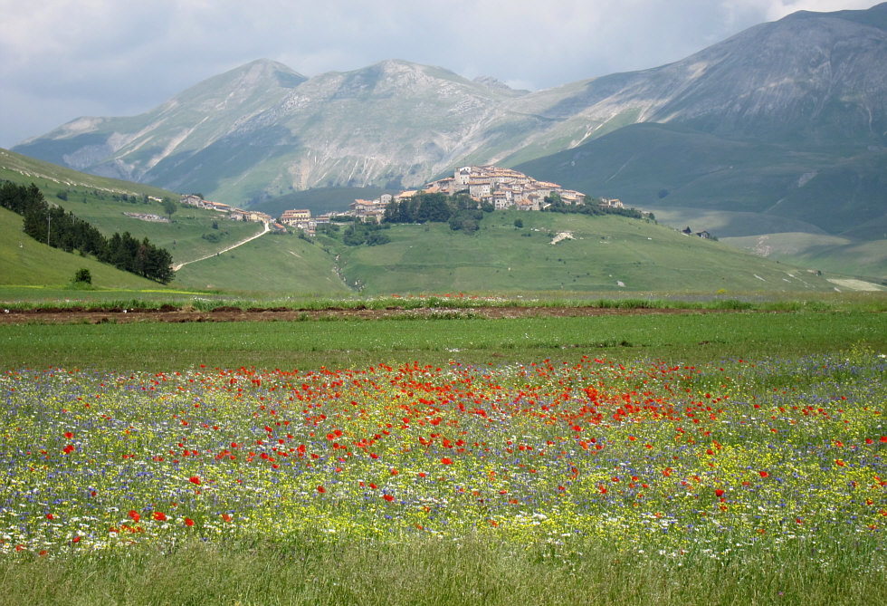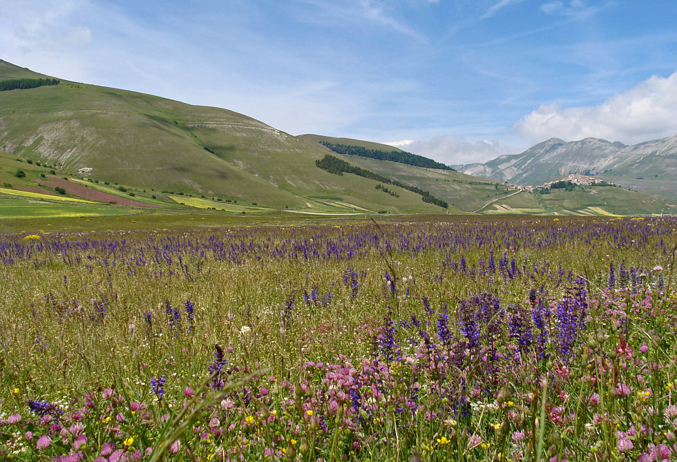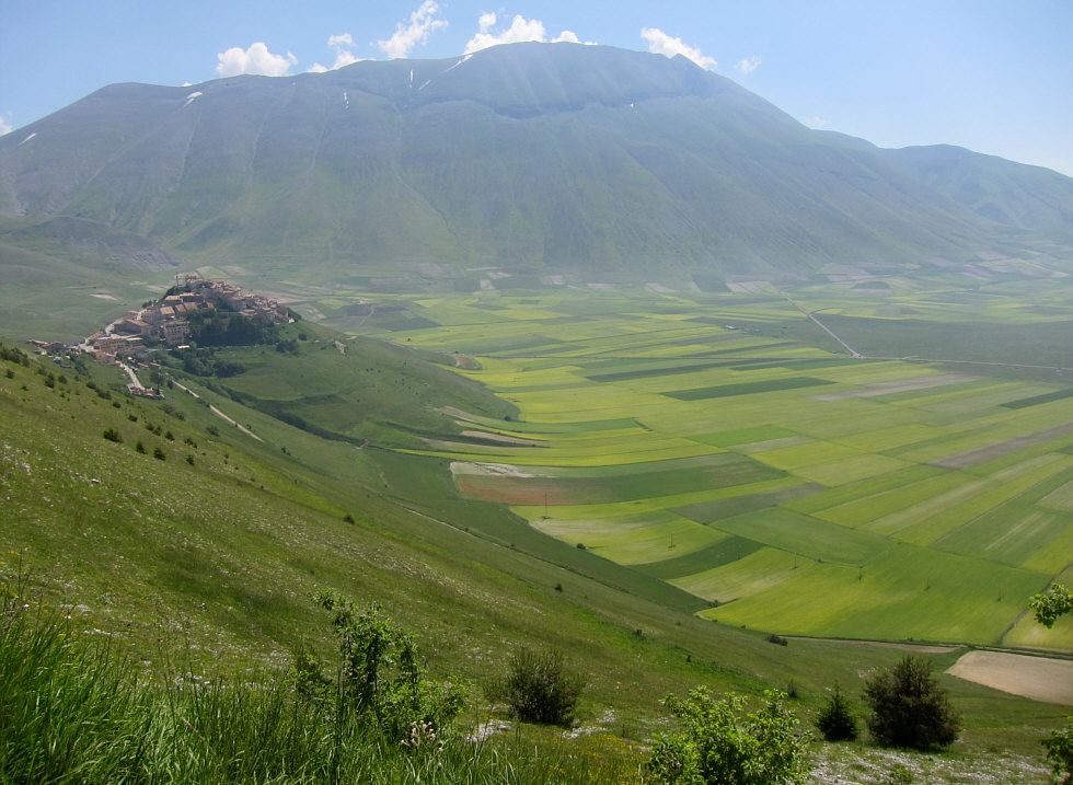 großen Ebene und schauen auf die Stadt Castelluccio: