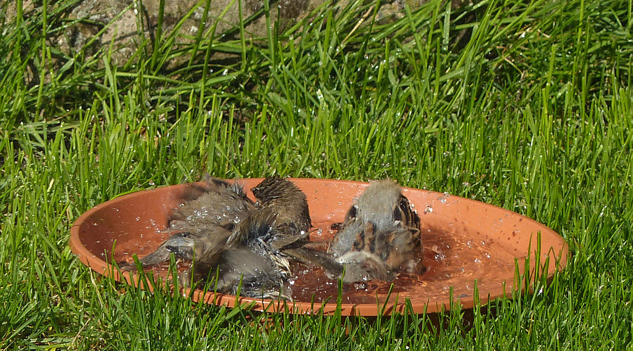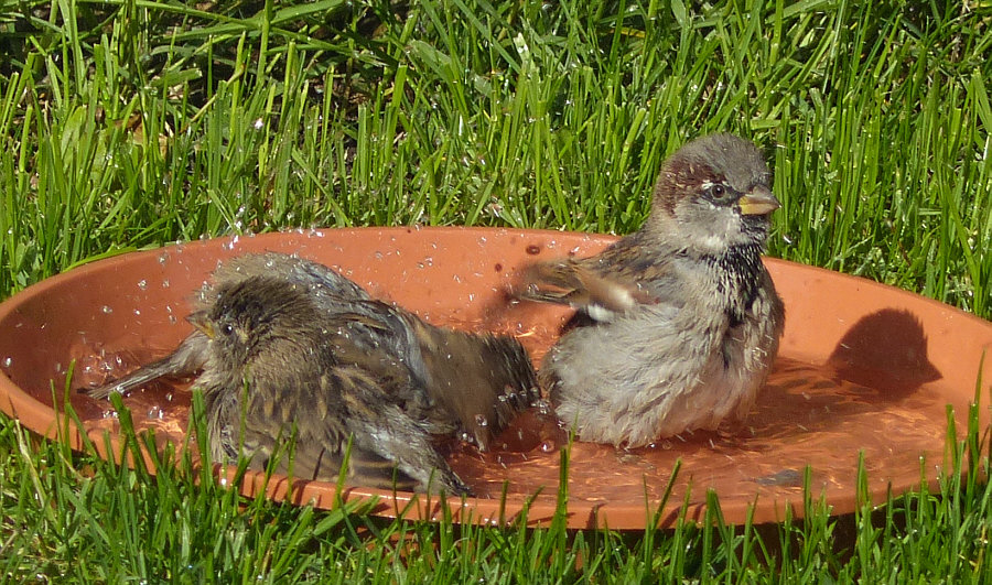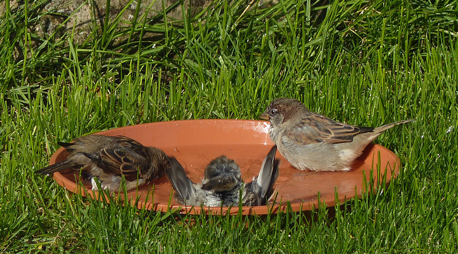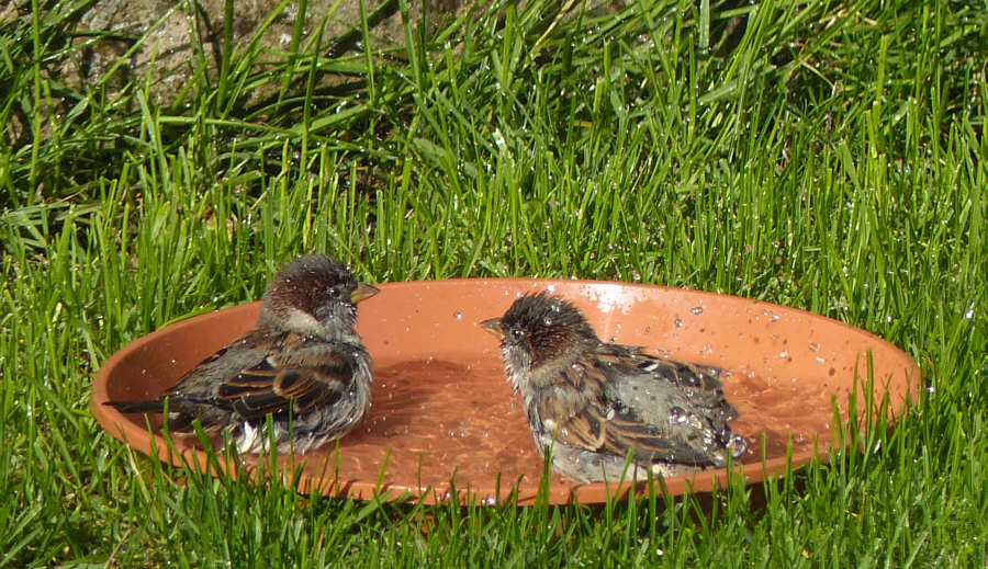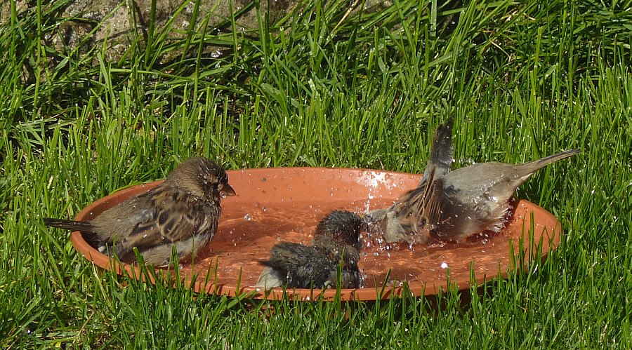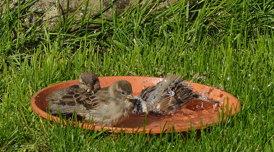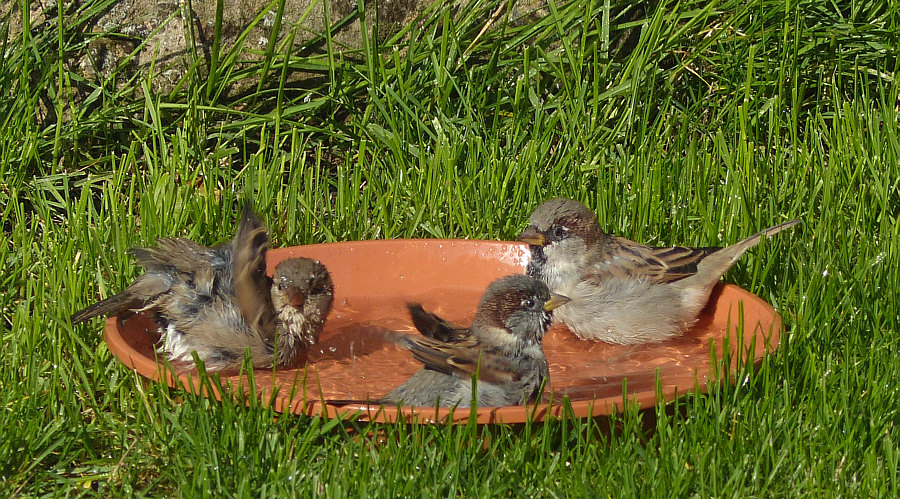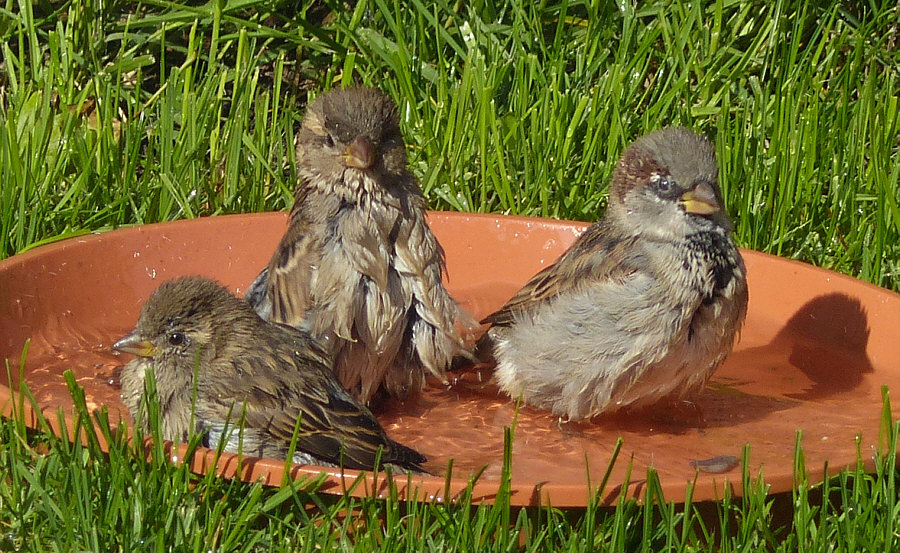 Das sind übrigens noch junge Spatzen ... Nachwuchsschwimmer quasi.