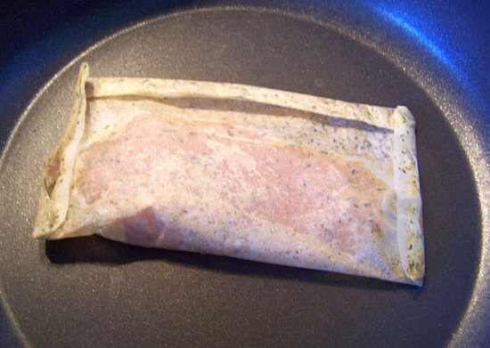 Und dann ging es los, eingewickelt und rauf auf die heiße Pfanne.
