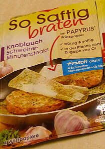 ich hab heute das Würzpapier für Schweineminutensteak mit Knoblauch ausprobiert.