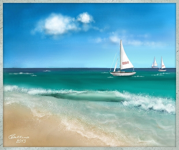 Sommer am Meer ... mit der Maus gemalt. Lassen wir doch mal dieses Bild ein wenig wirken und dann nehme ich die Farbe für einen kurzen Moment wieder weg. kleine Farbpause