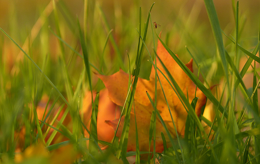 Grashalmen und einem Herbstblatt